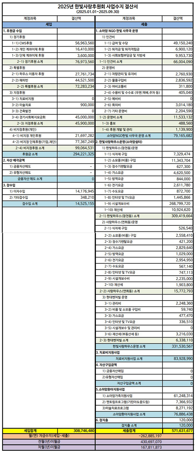 2025년 3분기(1월~9월) 세입세출결산서 공고